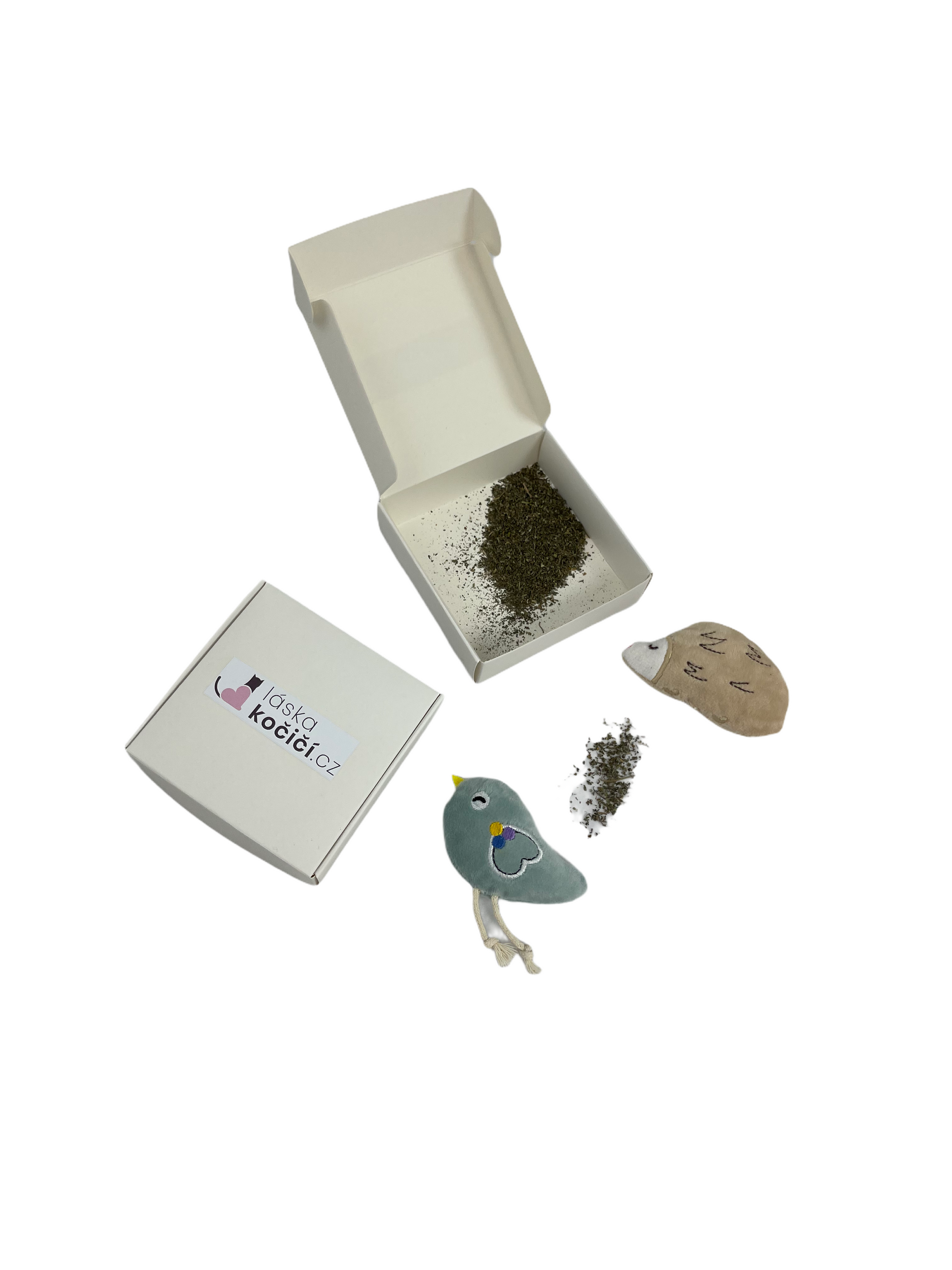 The catnip drives (almost) all felines crazy. The bird and the hedgehog are filled with shanta. We send them in a gift box filled with a few extra grams of shanta so that the nirvana never ends.... or at least lasts until the next order :-)