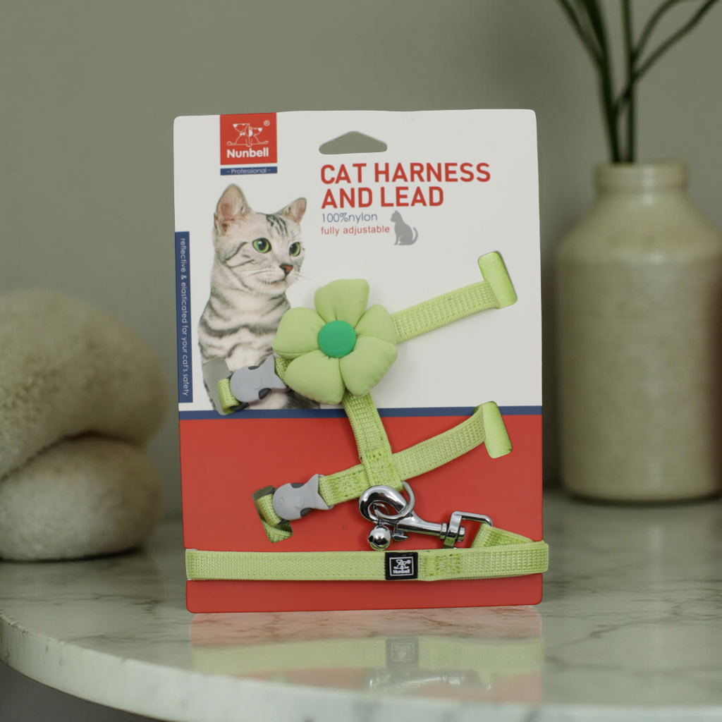 Postroj s vodítkem pro kočky Mint Blossom – bezpečný, nastavitelný a stylový