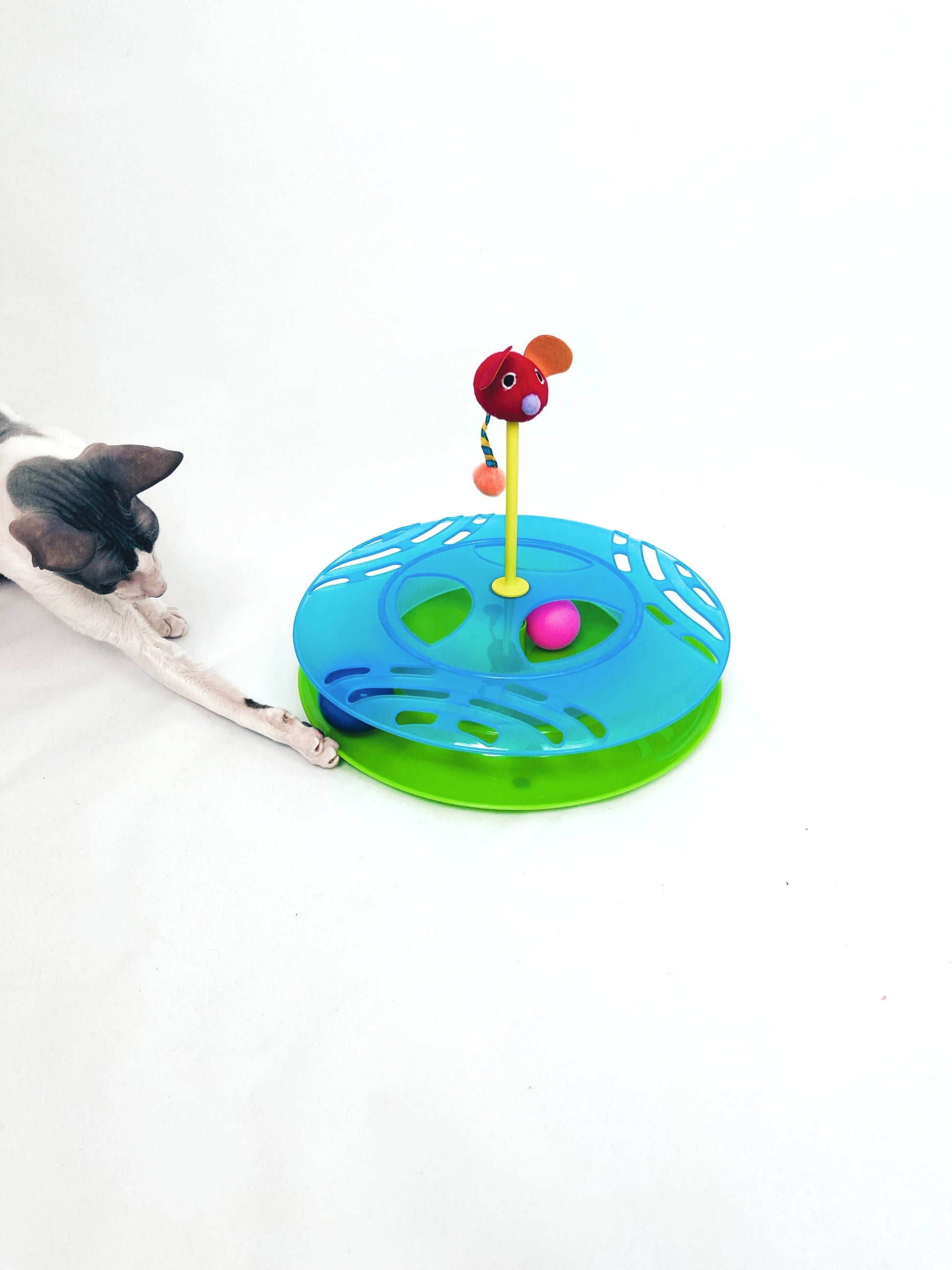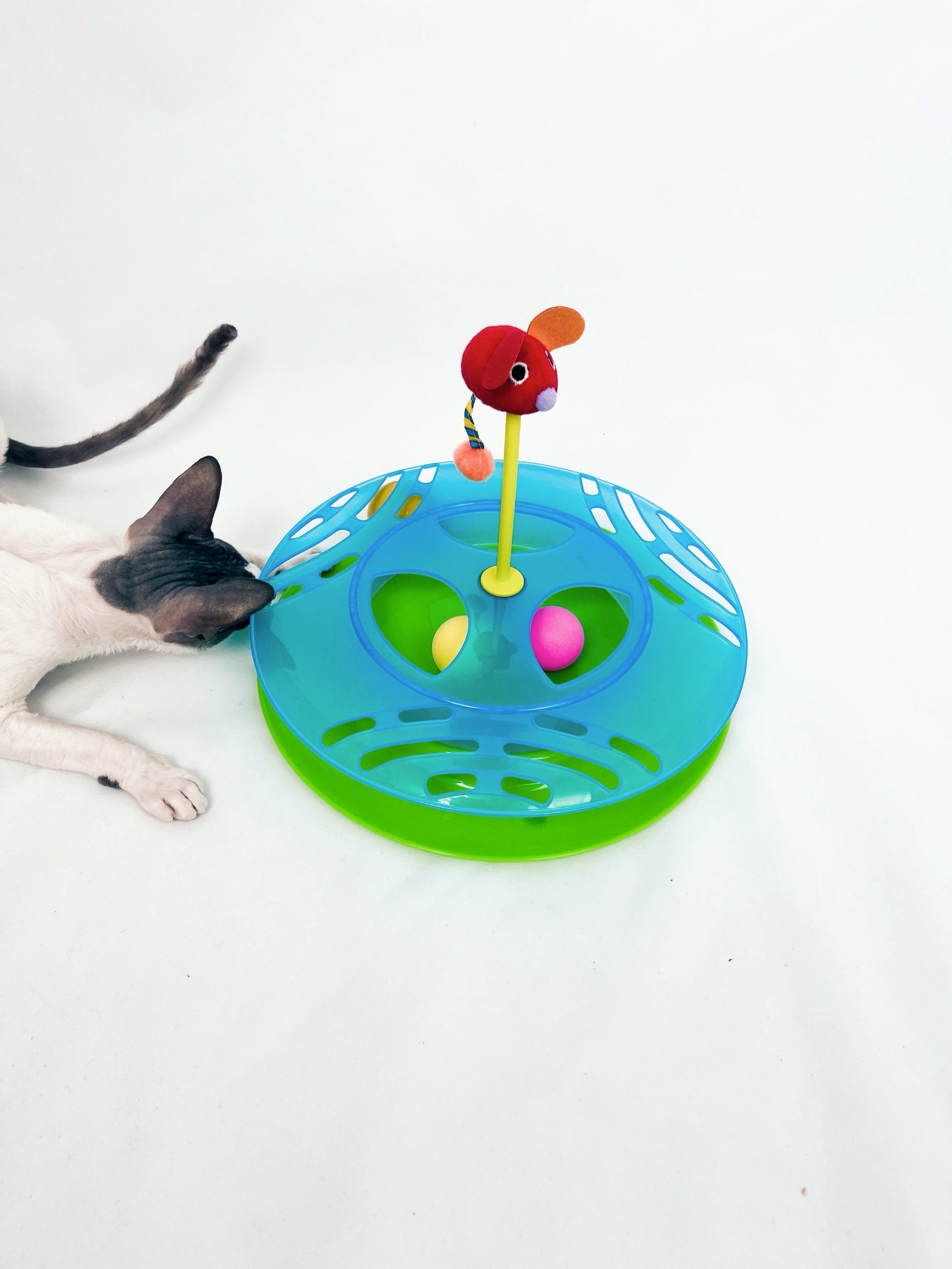 The BOB mouse has a track with one large ball around its perimeter and two smaller balls in its centre. Every cat wants to pull out at least one ball or run it through his paw. The BOB mouse is filled with catnip to make it even more appealing to kitties. It worked great for our team! Check out our videos on IG @laskakocici.cz