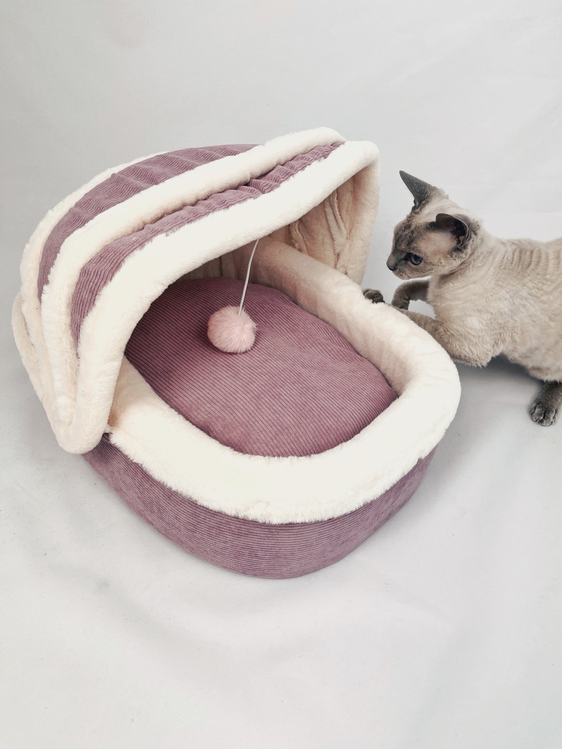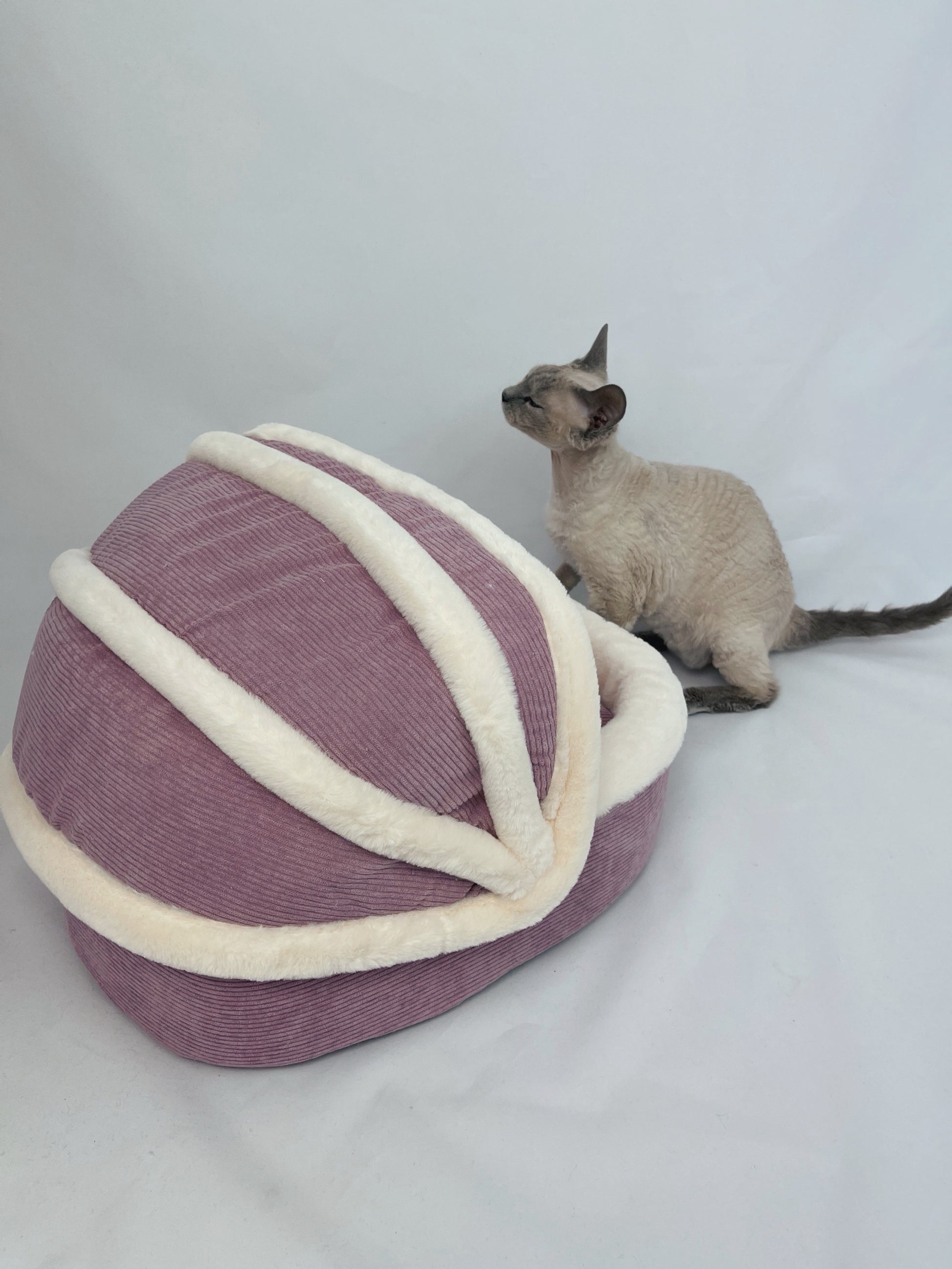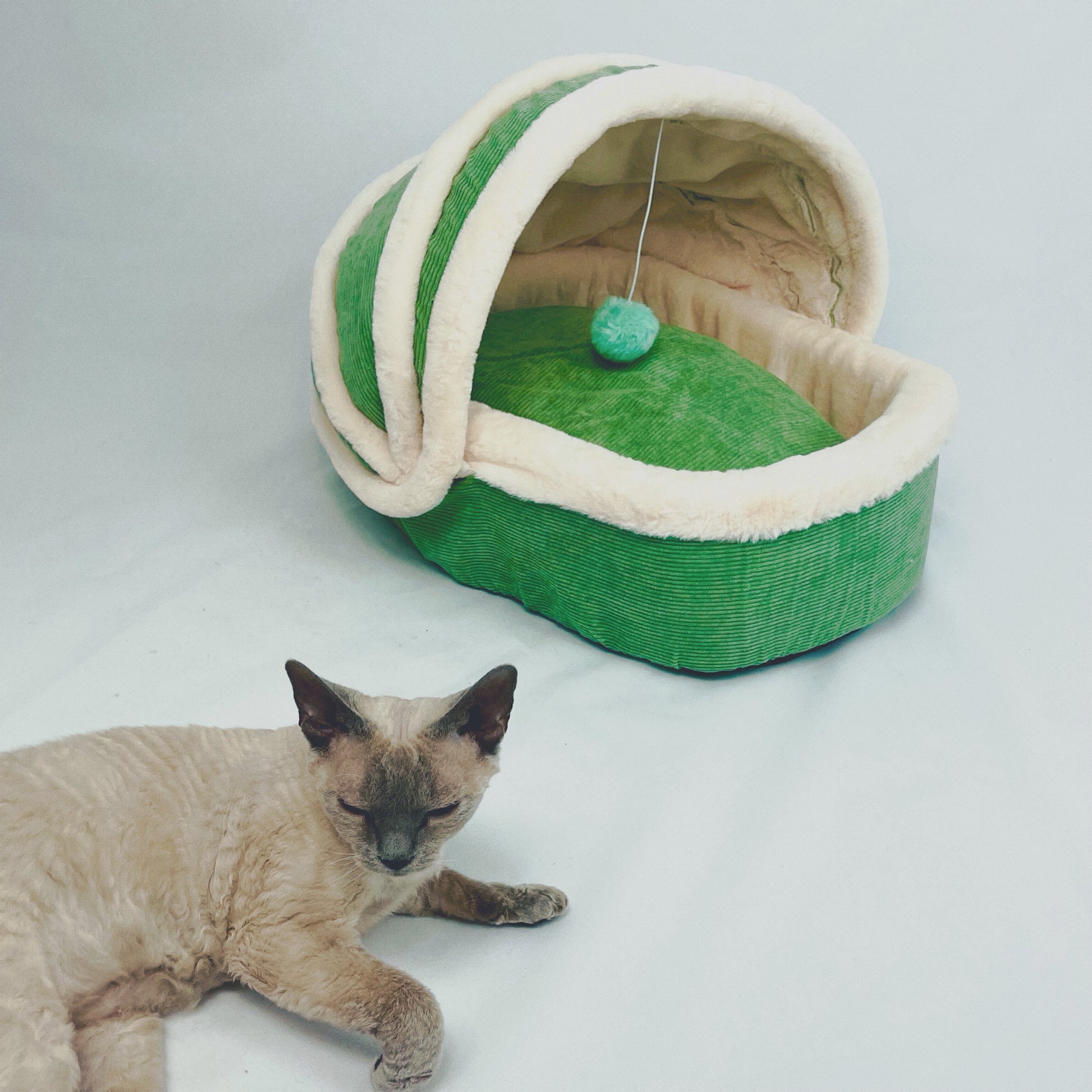 Comfortable bed made of quality material, can be both a favorite cat bed and a toy. The soft plush was the most popular among all the materials used. The lounging cushion is double-sided plush/fibre and is machine washable. The pink bed is smaller in size 49x42x33 cm. The green lounger is a larger size 54x47x40 cm.