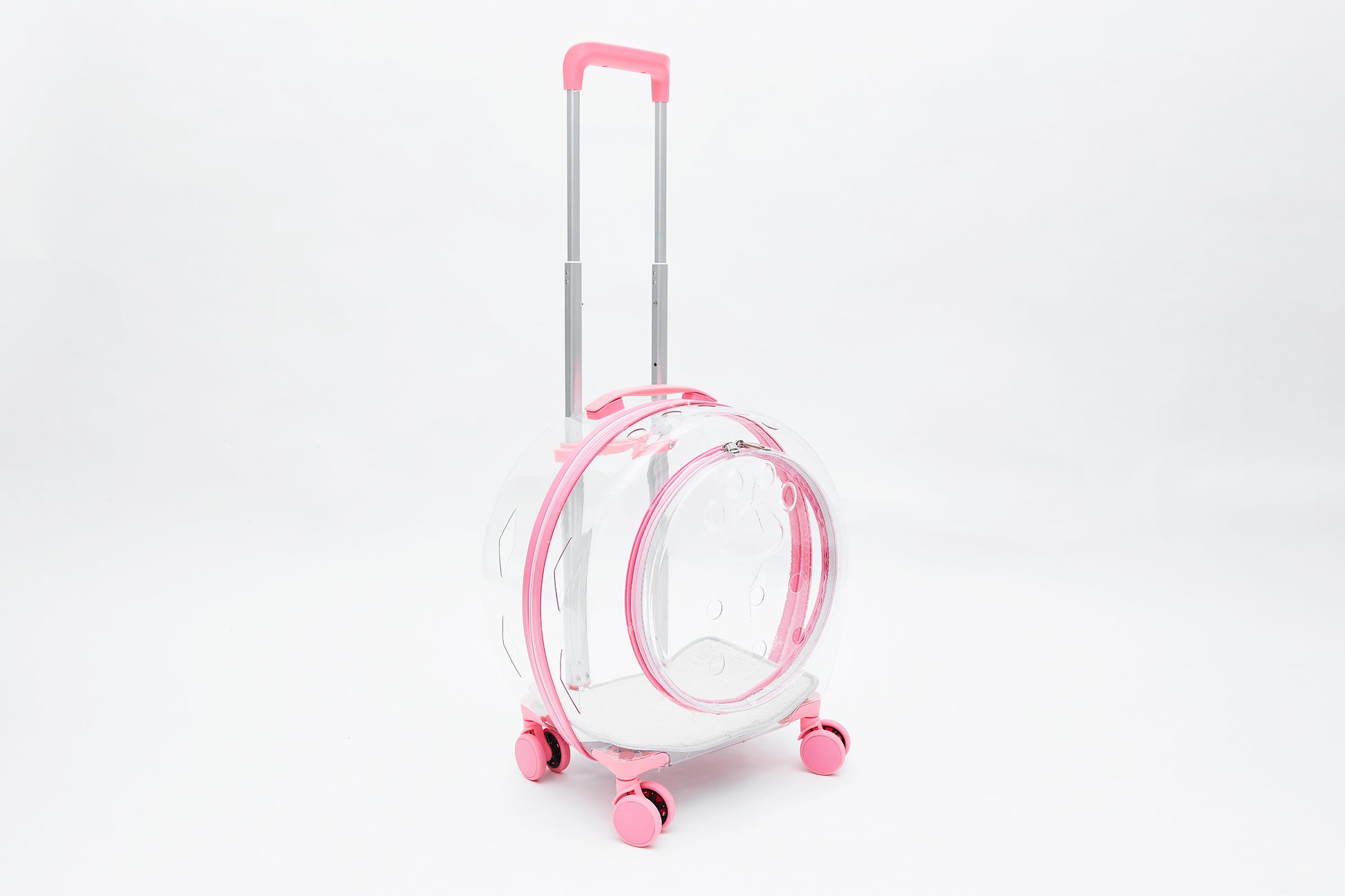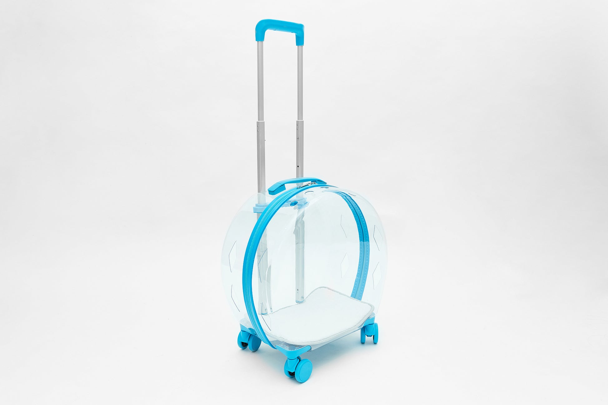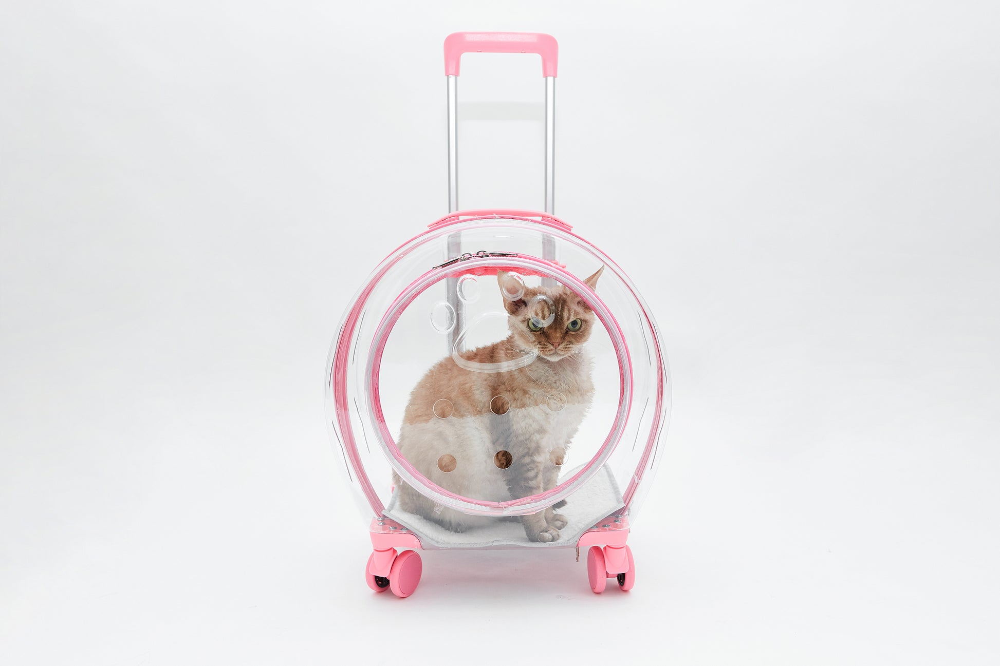 Acrylkiste auf Rädern, für anspruchsvolle Katzenmütter. An den Seiten befinden sich unterschiedlich große Löcher (siehe Foto), geeignet für kleine und mittelgroße Hunde und Katzen mit feinem Geschmack. Ideal für lange Reisen, da man den Hund/die Katze nicht tragen muss. Die Katzen fühlen sich darin sicher, denn unsere Katzenbetreuer wollen nicht einmal aussteigen. Er erfüllt die Anforderungen an Handgepäck.