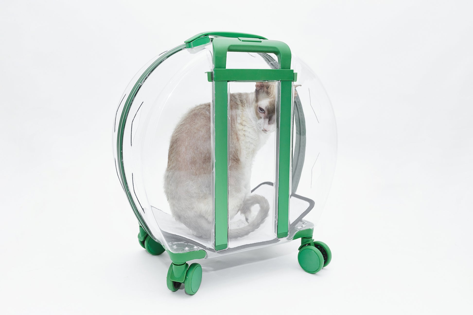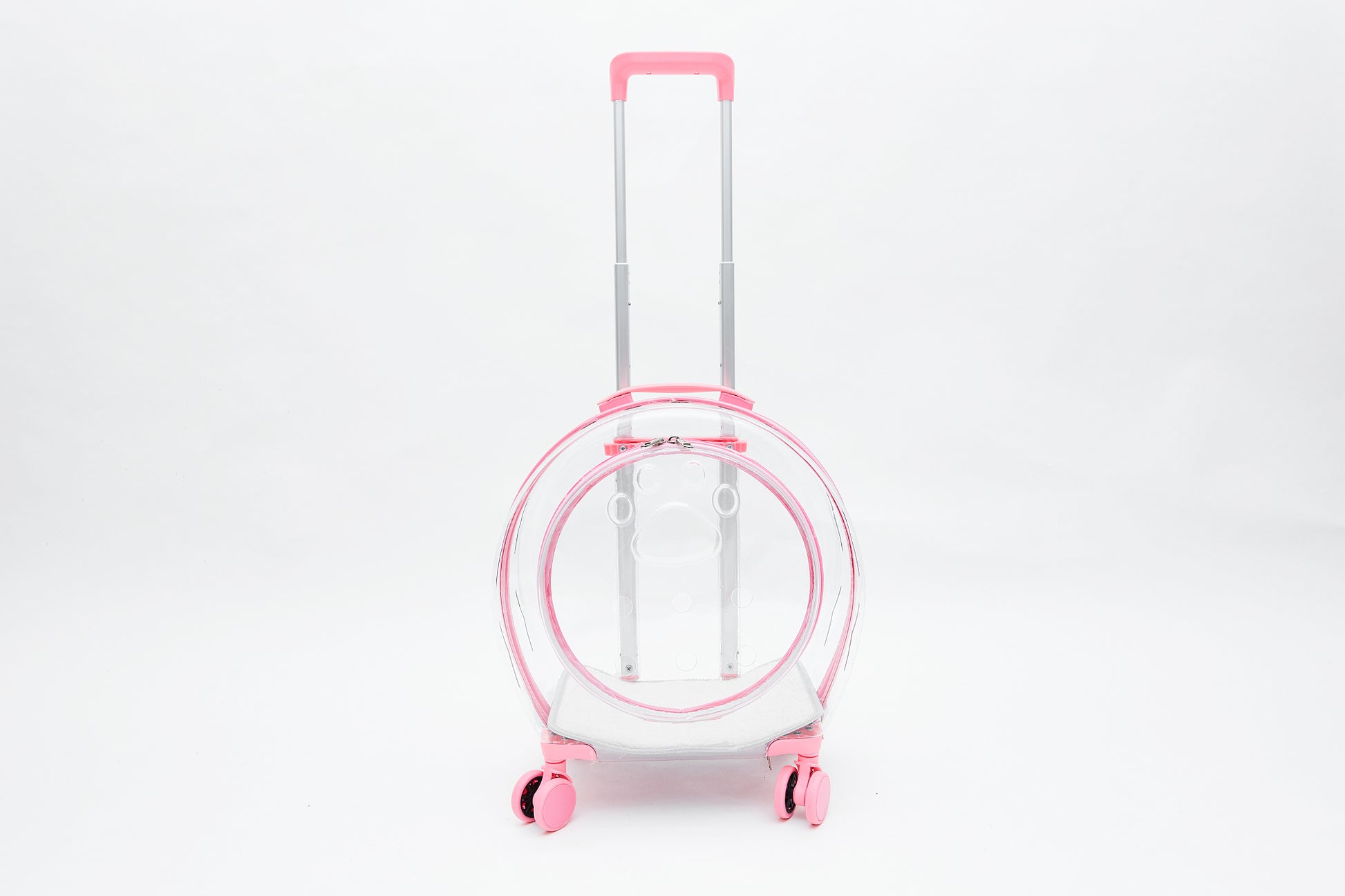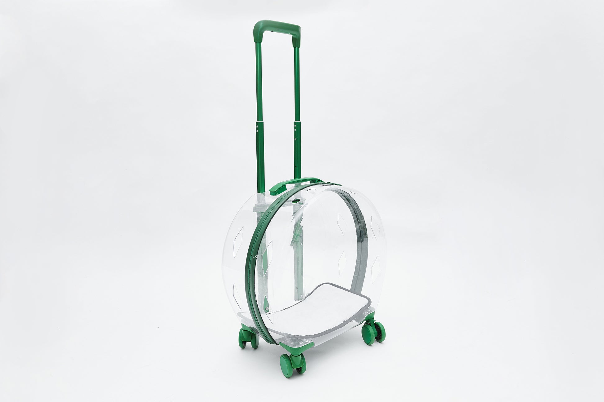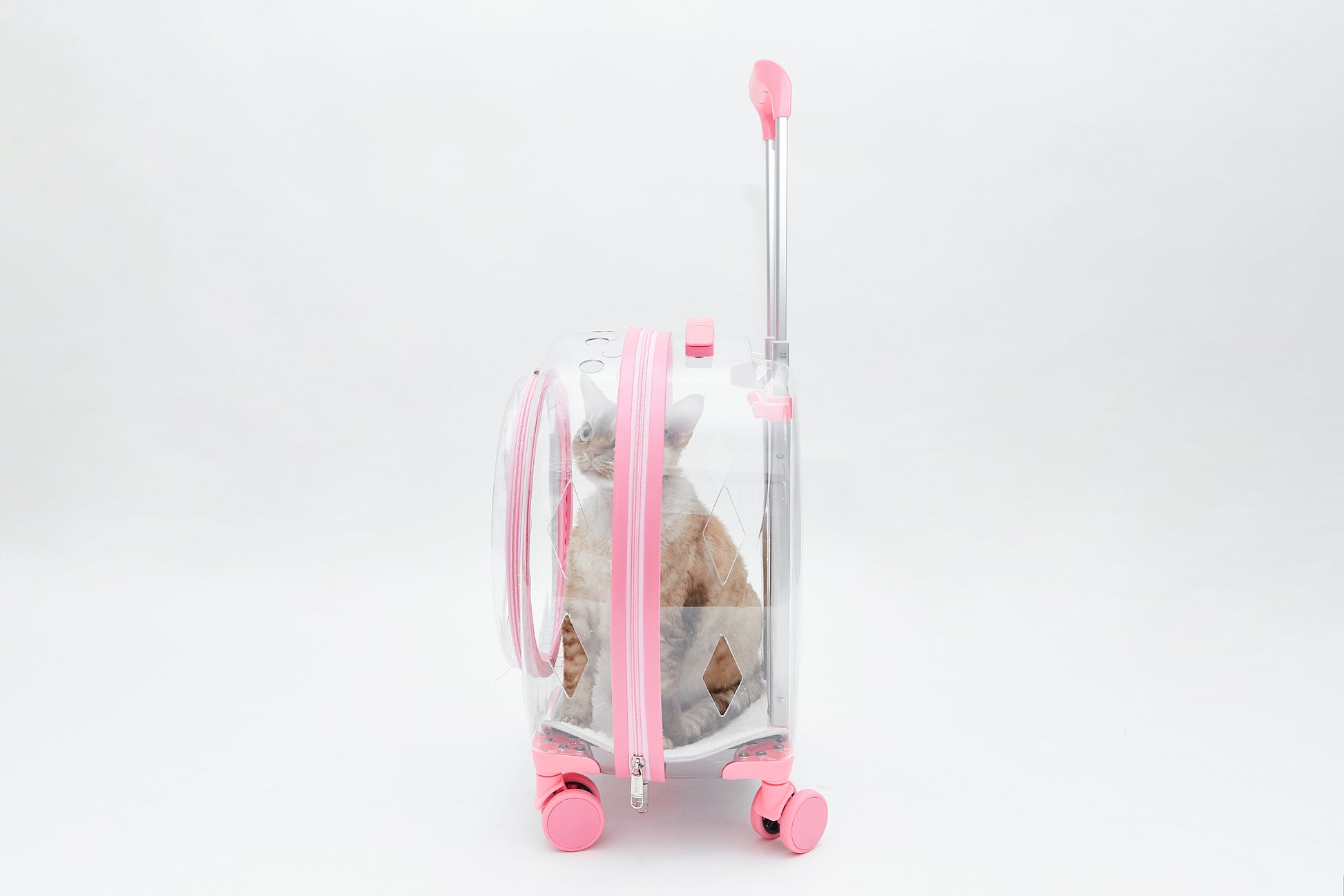 Acrylkiste auf Rädern, für anspruchsvolle Katzenmütter. An den Seiten befinden sich unterschiedlich große Löcher (siehe Foto), geeignet für kleine und mittelgroße Hunde und Katzen mit feinem Geschmack. Ideal für lange Reisen, da man den Hund/die Katze nicht tragen muss. Die Katzen fühlen sich darin sicher, denn unsere Katzenbetreuer wollen nicht einmal aussteigen. Er erfüllt die Anforderungen an Handgepäck.