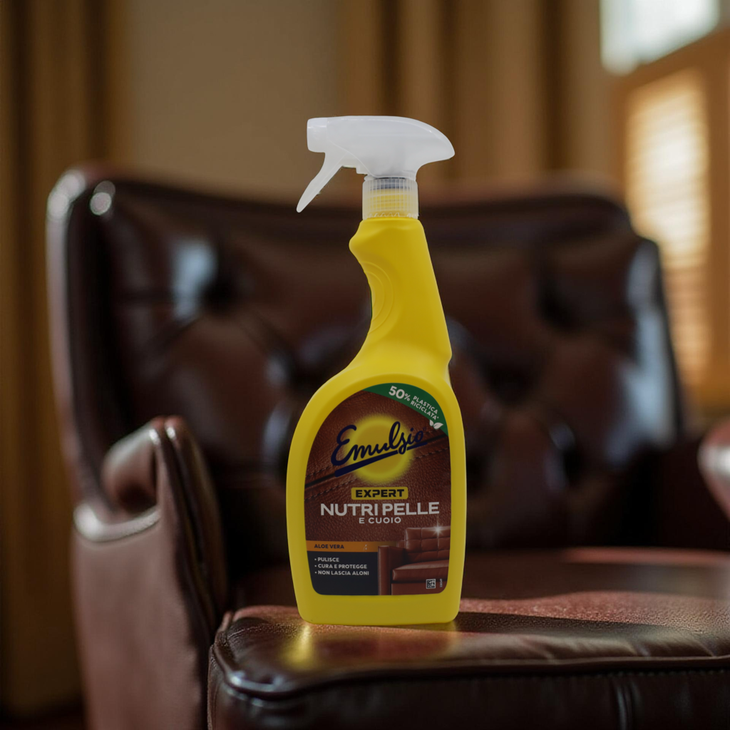 Emulsio Expert Nutri Pelle e Cuoio 600 ml je vyživující čisticí sprej určený pro péči o všechny druhy kůže – od kožených sedaček přes kabelky až po interiéry aut. Italská receptura s přírodními oleji povrch čistí, hydratuje a chrání před vysycháním, praskáním i ztrátou lesku. Zanechává jemný sametový finiš a decentní vůni, která nepůsobí rušivě ani v domácnostech se zvířaty.