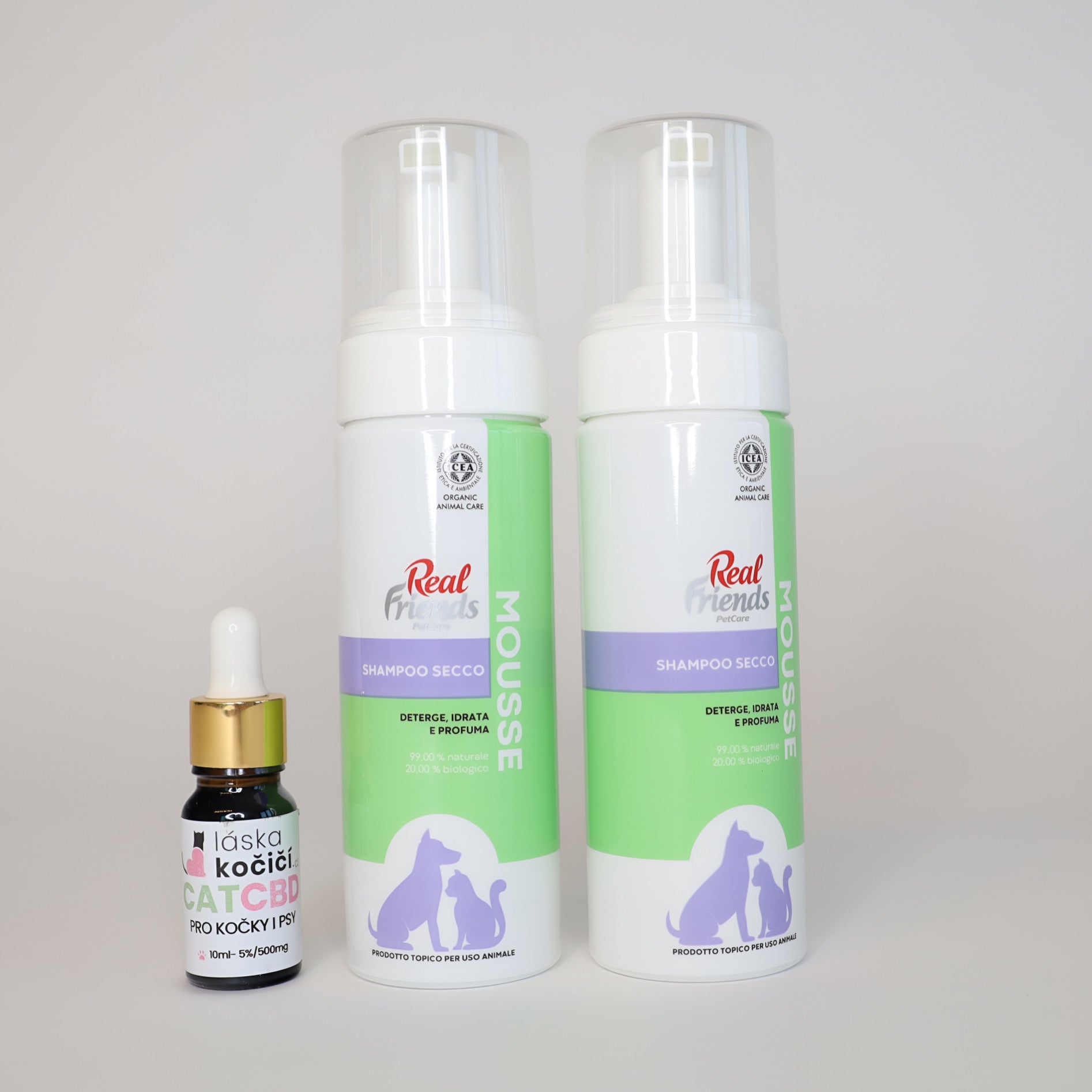 Stačí, aby váš mazlíček uslyšel tekoucí vodu, a najednou je z něj největší mistr úniků na světě? A když se bojí on, stresuje to i vás. Přesně proto jsme dali dohromady tento balíček. S naším suchým šamponem bude váš mazlíček čistý a voňavý, aniž by se musel dotknout vody, a CBD kapky ho pomohou udržet v klid, ať už jde o koupel, návštěvu doktora nebo jen náročný den.