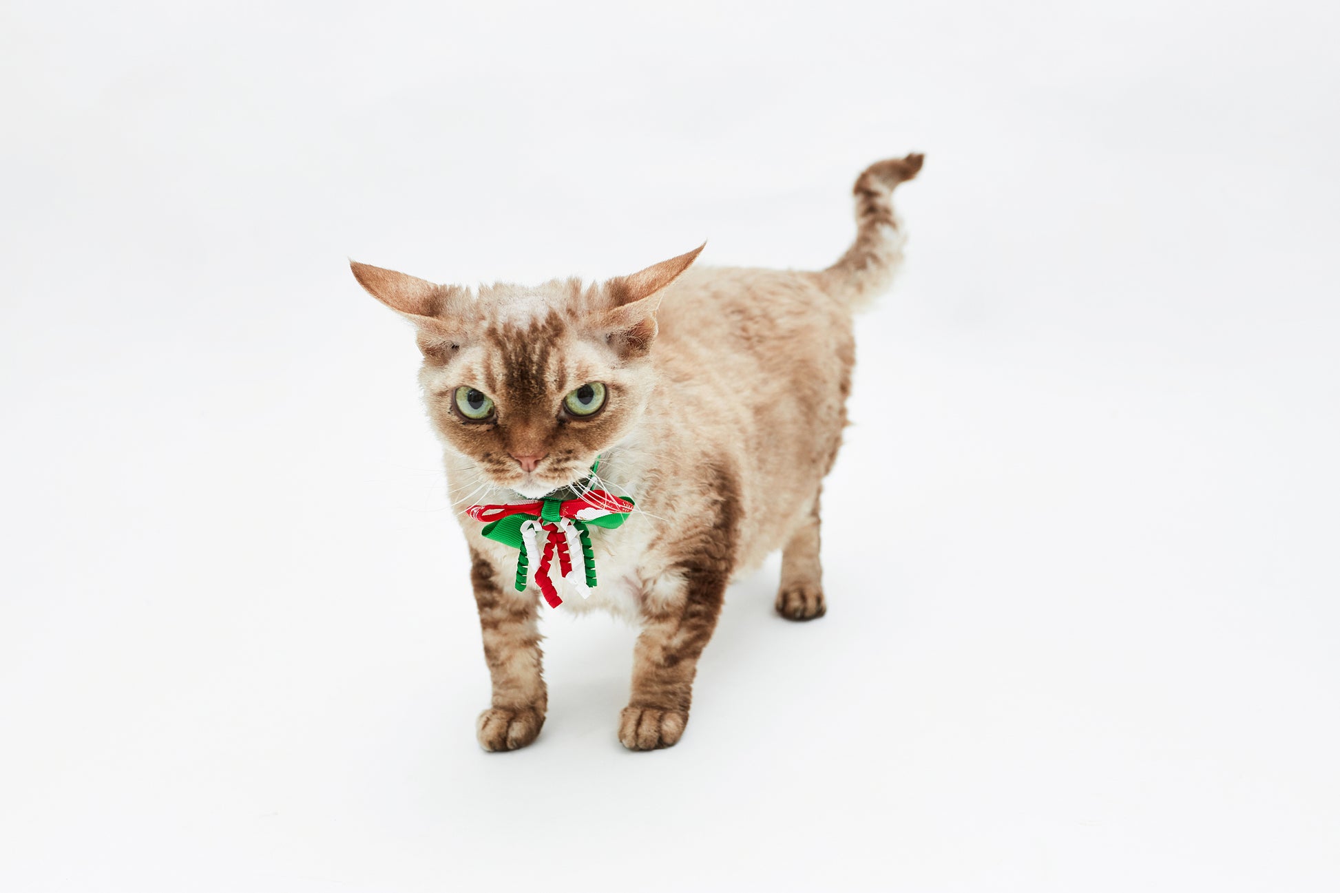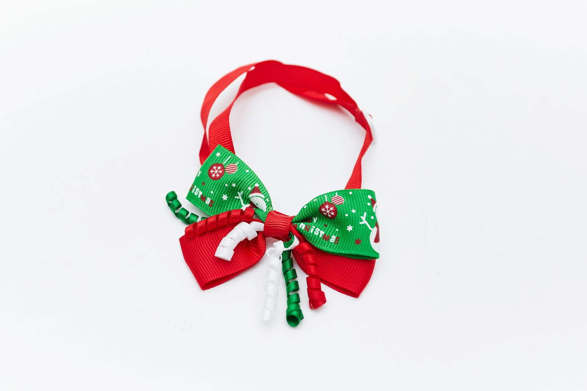 Weihnachtsfliege mit verstellbarer Größe. Der minimale verstellbare Halsumfang beträgt 17 cm und der maximale 34 cm. Es wird das Thema der Familie Weihnachten Foto-Shooting und die Atmosphäre der Weihnachtsessen zu bereichern. Es ist für alle Katzen geeignet.